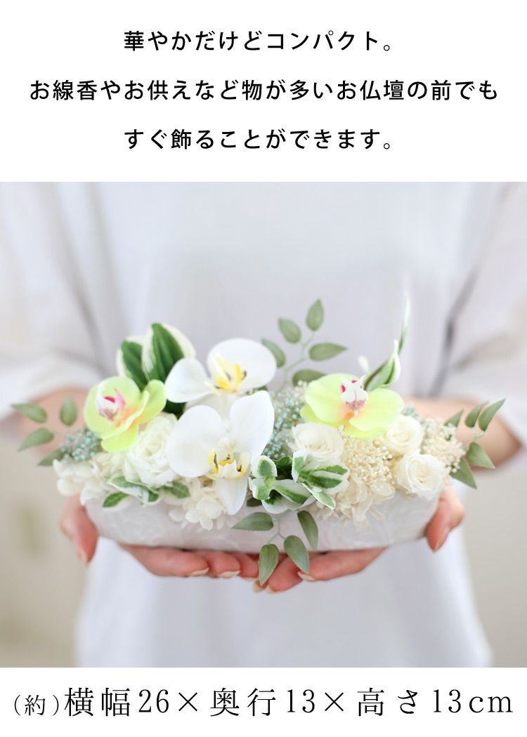 他の画像を見る 即日発送 送料無料 お供え用 プリザーブドフラワー 枯れないお花のアレンジ 送料無料 お供え 仏花 プリザーブドフラワー ファレノ 当店特別価格 ¥ 6,310 税込 会員価格あり Web会員様特別価格 ¥ 5,995 税込 詳細を見る お気に入りに登録する