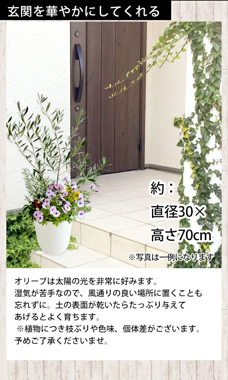 4. シンボルツリーの寄せ植え 鶴亀園オリーブ <ホワイトポットでお届け>