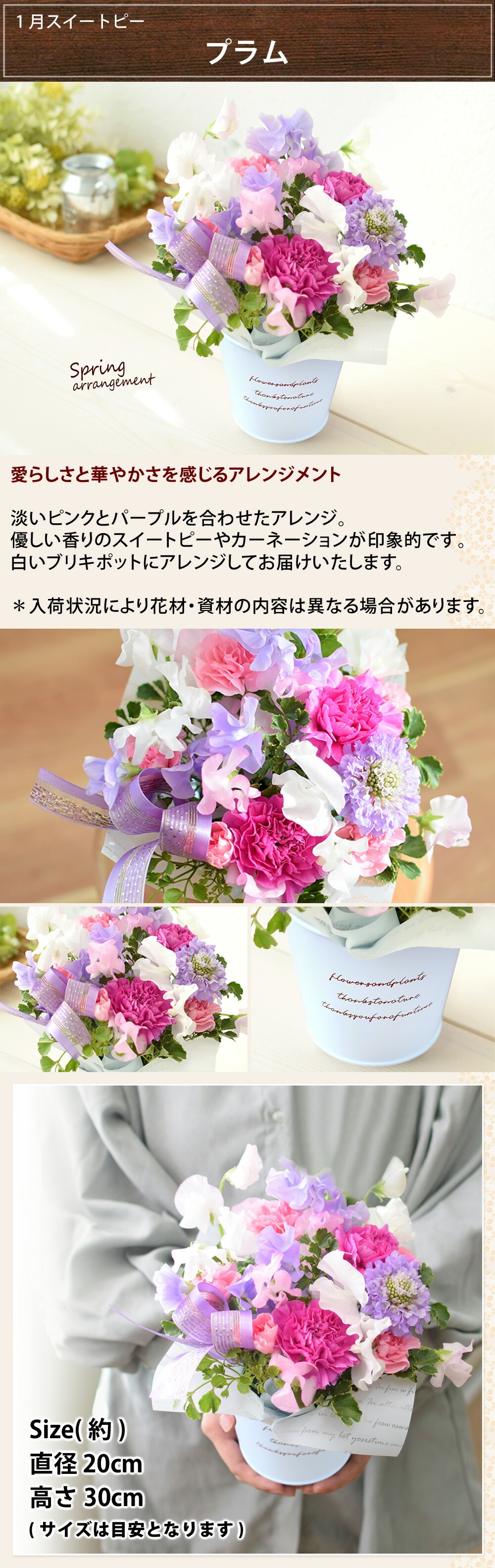 4. 誕生花を使ったアレンジメント 1月 スイートピー 誕生月の生花アレンジ 「プラム」