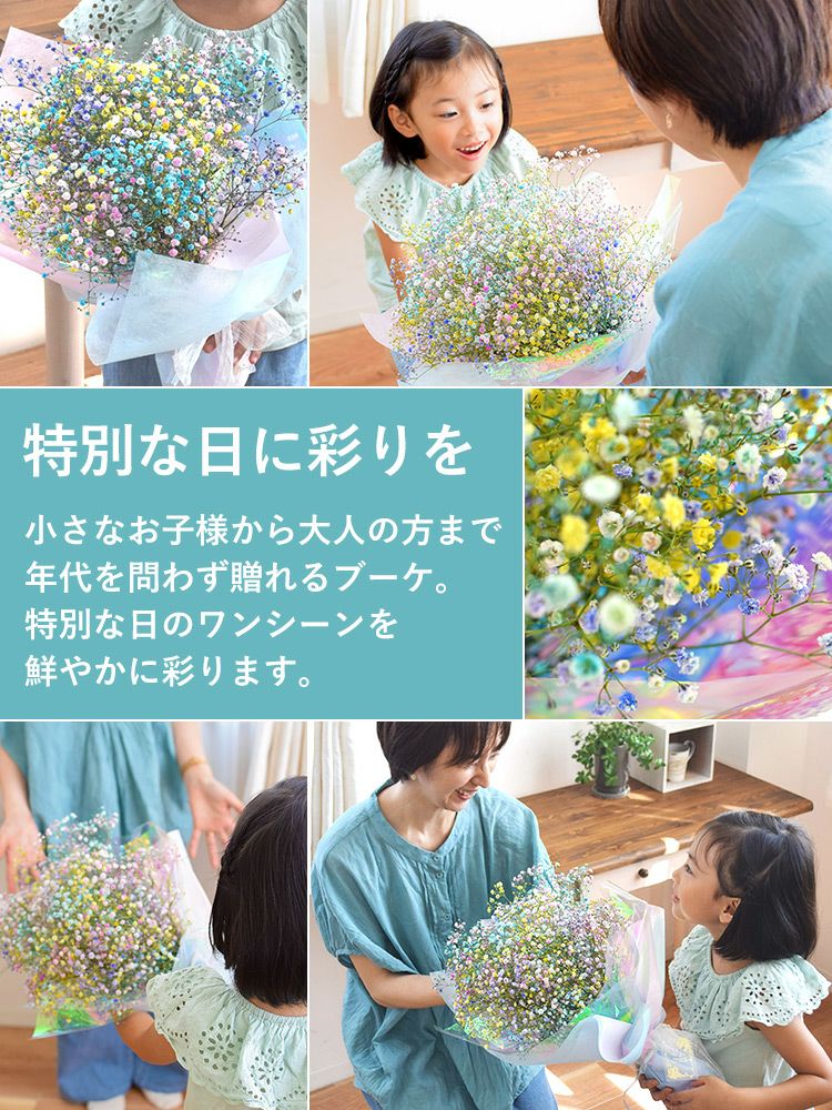 他の画像を見る 送料無料 生花花束 カラフル!かすみ草の花束♪ かすみ草のブーケS カスミソウ 当店特別価格 ¥ 3,980 税込 会員価格あり Web会員様特別価格 ¥ 3,781 税込 詳細を見る お気に入りに登録する