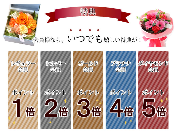 | プラチナ | 過去12ヶ月購入金額2万円以上 または購入回数5回以上 |