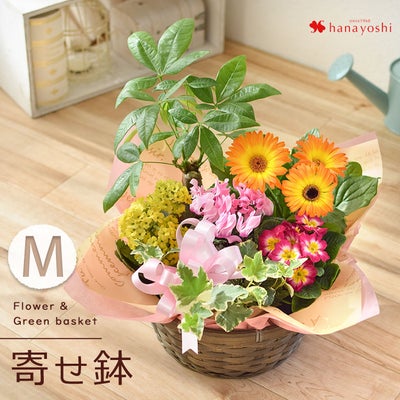 送料無料 季節のおまかせ花鉢とグリーンの寄せ入れ Mサイズ フラワーバスケットのレビュー