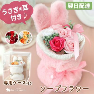 ソープフラワー 花束 7輪 ファーラビットスタンドブーケ 選べる 3カラーのレビュー