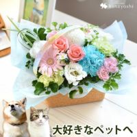 大切なワンコの2回目の月命日のお花として注文しました。写真のとおりの、素敵なアレンジメントでとても満足しています。ワンコを亡くした悲しい気持ちが少しだけ和らぐ気がして、身近にお花のある生活を心がけています。今回はありがとうございました。またリピートさせていただきます。