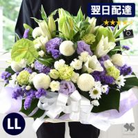 49日お供え、色のセンスが良くて、美しいアレンジメントを作っていただきありがとうございました! 4人の名前を依頼主にも記入していただきました。 -