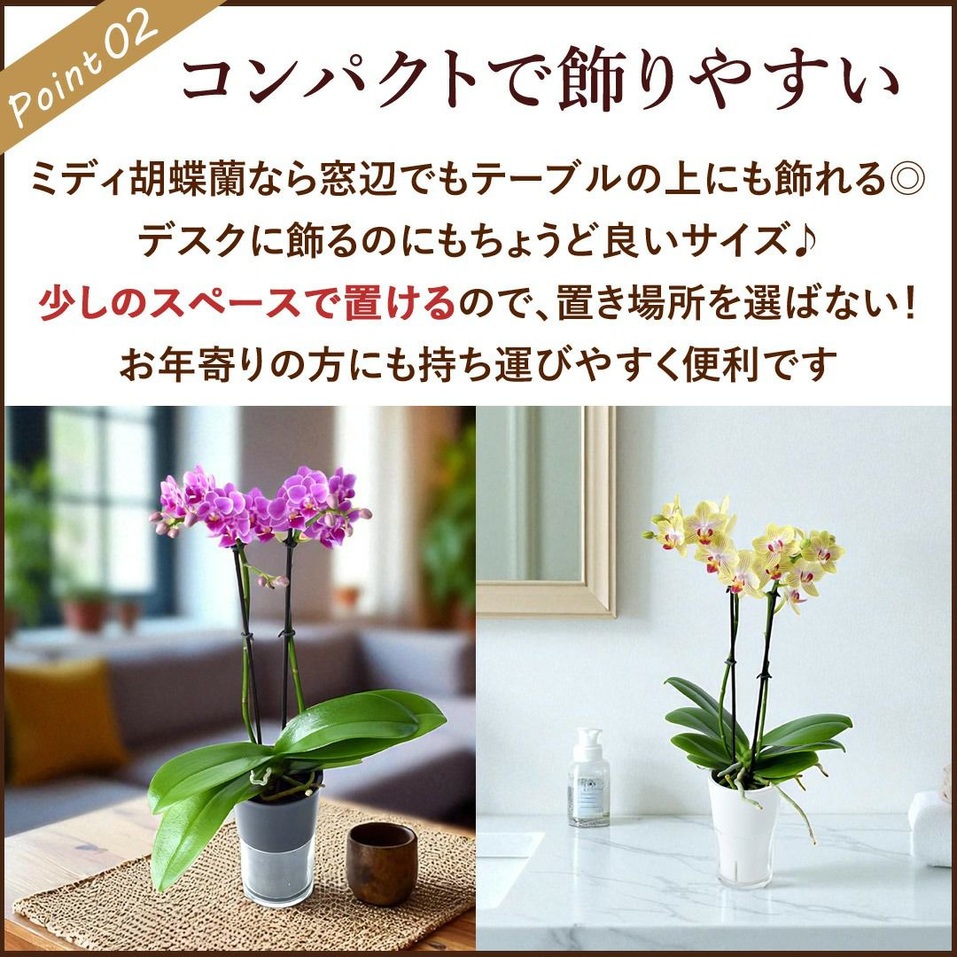 他の画像を見る 花言葉は「幸せが飛んでくる」 ミディ胡蝶蘭 産地直送 椎名洋ラン園さんの 花色と器の色が選べる お手入れ簡単すぎる ミディ胡蝶蘭 タンブラースリムポット 送料無料 誕生日 鉢植え 当店特別価格 ¥ 5,480 税込 会員価格あり Web会員様特別価格 ¥ 5,205 税込 詳細を見る お気に入りに登録する