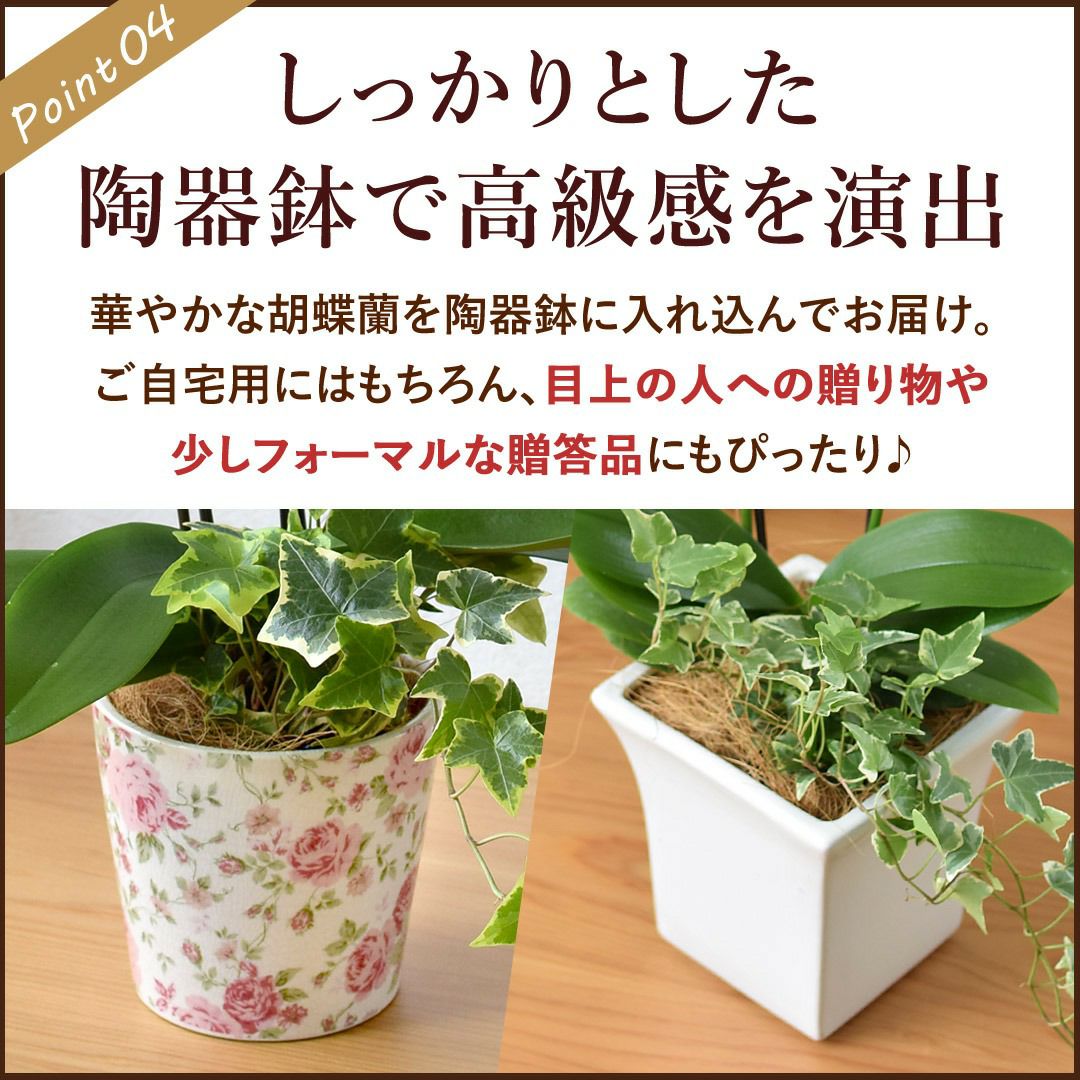 他の画像を見る 花言葉は「幸せが飛んでくる」 ミディ胡蝶蘭 産地直送 椎名洋ラン園さんの アイビー寄せ ミディ胡蝶蘭 花と器の色が選べる 送料無料 誕生日 鉢植え 当店特別価格 ¥ 6,980 税込 会員価格あり Web会員様特別価格 ¥ 6,630 税込 詳細を見る お気に入りに登録する