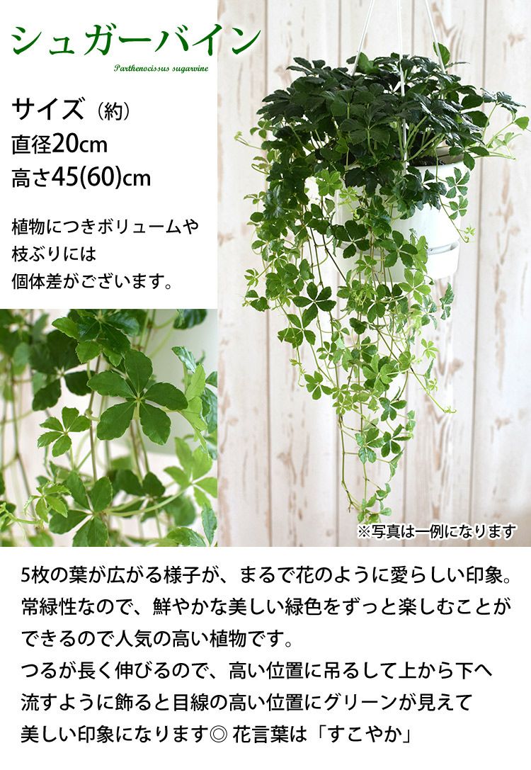 他の画像を見る お祝いに人気 観葉植物ギフト ご自宅用にも◎ 観葉植物 シュガーバインのハンギング 育てやすい インテリアグリーン 送料無料 観葉植物 当店特別価格 ¥ 3,480 税込 会員価格あり Web会員様特別価格 ¥ 3,305 税込 在庫切れ 詳細を見る お気に入りに登録する