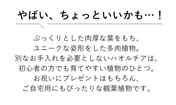 他の画像を見る ぷっくりと丸く透き通った葉は可愛らしく、光が透けるとまるで宝石のよう ハオルチア・オブツーサ 観葉植物 多肉植物 インテリア ギフト 室内 おしゃれ 送料無料 観葉植物 当店特別価格 ¥ 3,480 税込 在庫切れ 詳細を見る お気に入りに登録する