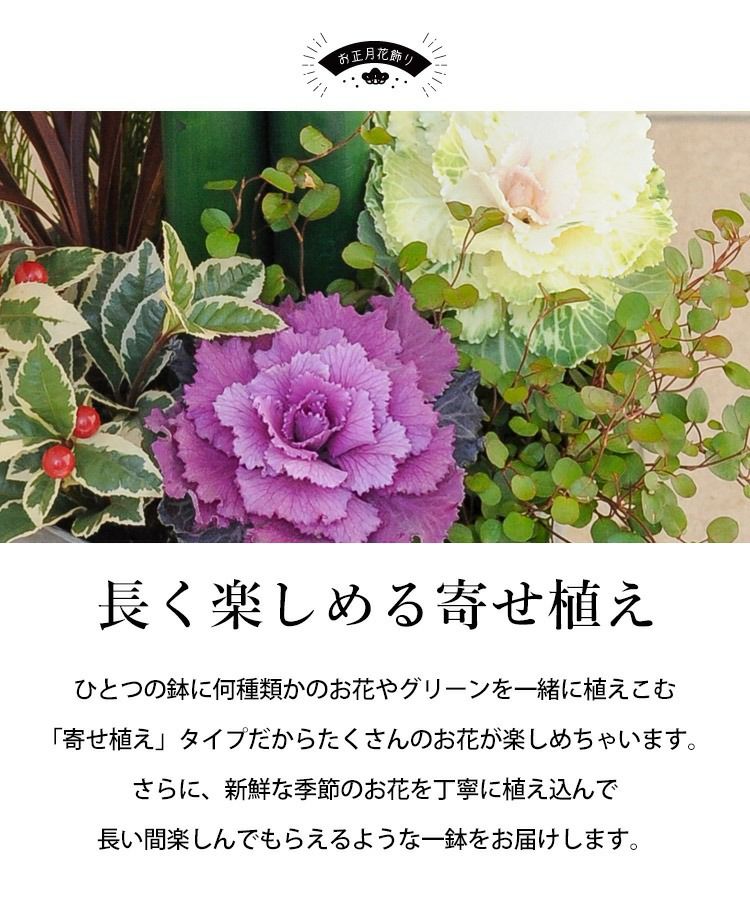 他の画像を見る お正月が終わったら竹を外して寄せ植えに変身! お正月 2026 門松 寄せ植え スタイリッシュなモダン門松 12/26~12/30の間で指定OK! 送料無料 寄せ植え 年末お届け限定 当店特別価格 ¥ 6,980 税込 会員価格あり Web会員様特別価格 ¥ 6,631 税込 在庫切れ 詳細を見る お気に入りに登録する