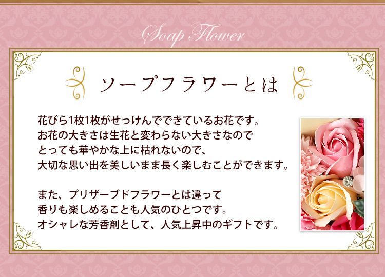 他の画像を見る 人気急上昇!ソープフラワー お誕生日・お祝い・プレゼントなどに人気 【土日も発送】 即日発送対応 ソープフラワー 六角チェックBOX <L> 選べる4カラー ボックスアレンジ ソープフラワー 当店特別価格 ¥ 3,980 税込 会員価格あり Web会員様特別価格 ¥ 3,781 税込 在庫切れ 詳細を見る お気に入りに登録する