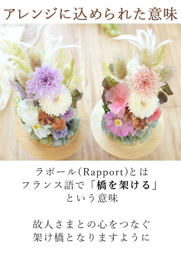 他の画像を見る ホコリよけになるドームアレンジ プリザーブドフラワー 仏花 ラポール 選べる3種類 送料無料 即日発送 即日発送 送料無料 お供え用 プリザーブドフラワー 当店特別価格 ¥ 9,980 税込 会員価格あり Web会員様特別価格 ¥ 9,480 税込 詳細を見る お気に入りに登録する