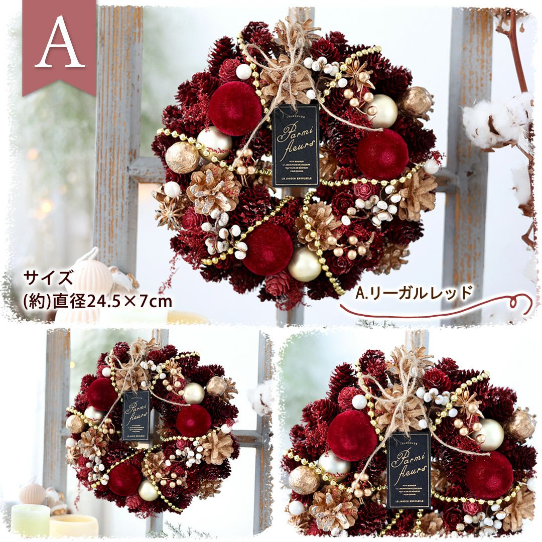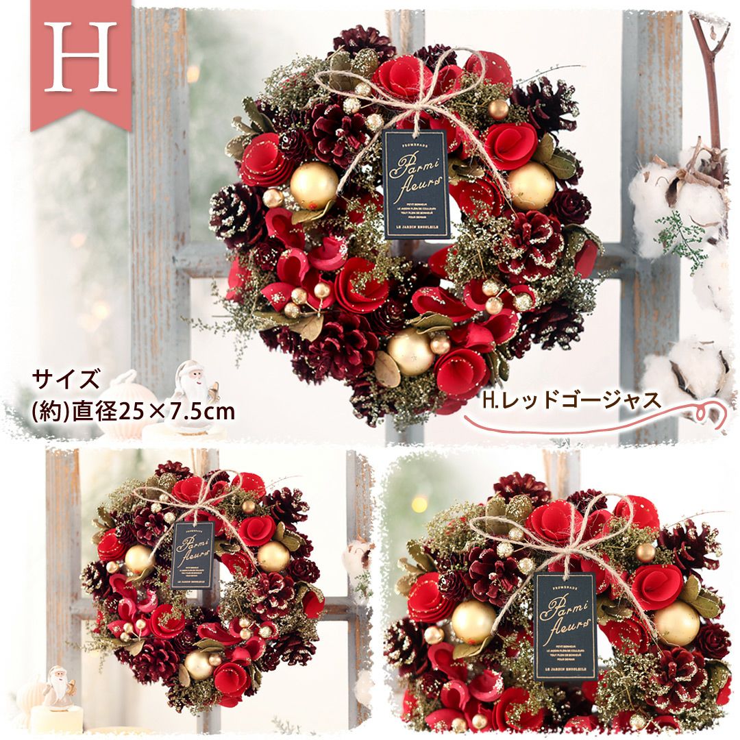 他の画像を見る おしゃれ空間に&インテリアにぴったり♪ 2025 クリスマス 新作リース Mサイズ 選べる15種類 直径約23.5~25cm 天然素材 ドライフラワー [RSL] 即日発送 送料無料 ドライフラワー 当店特別価格 ¥ 3,380 税込 会員価格あり Web会員様特別価格 ¥ 3,210 税込 詳細を見る お気に入りに登録する