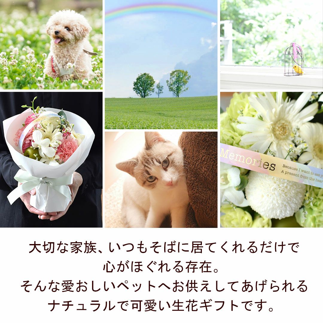 他の画像を見る ペットに贈る、選べるお供えのお花 お供え ペット 生花アレンジメント または 花束 そのままブーケ 選べる「虹の橋シリーズ」 ピンク グリーン 送料無料 お供え用 生花アレンジ 当店特別価格 ¥ 3,280 税込 会員価格あり Web会員様特別価格 ¥ 3,115 税込 詳細を見る お気に入りに登録する